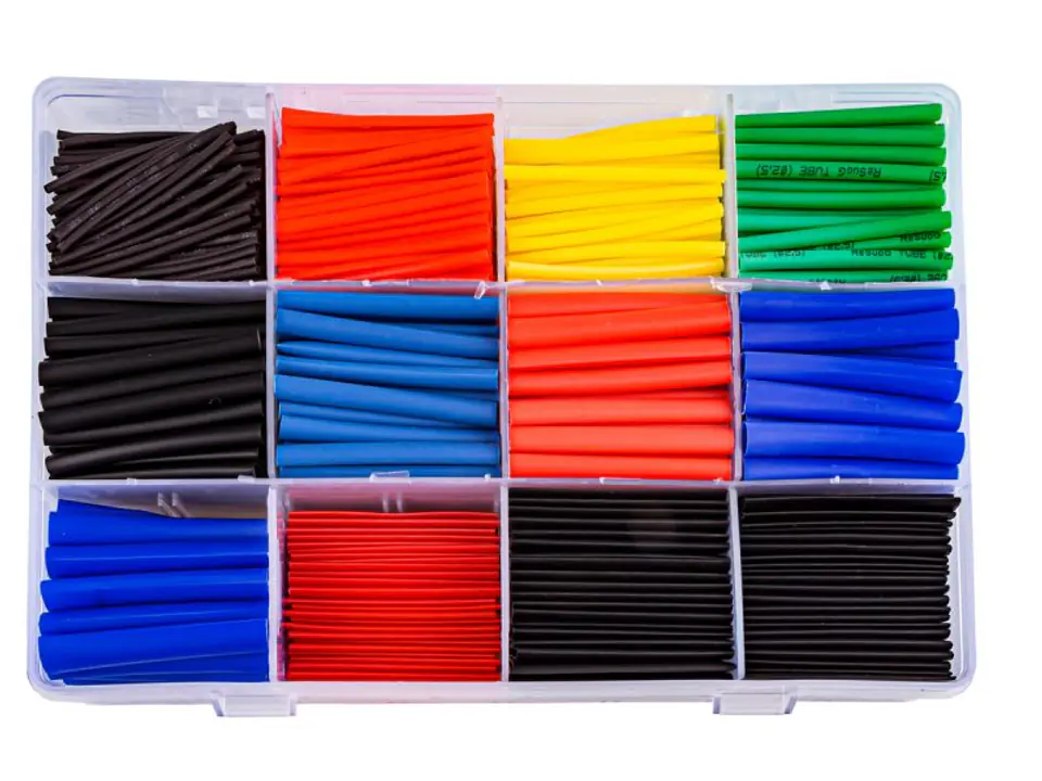 Zestaw koszulek termokurczliwych, elastycznych o grubej ściance oraz stosunku obkurczu 2:1.Charakteryzują się świetną ochroną mechaniczną oraz izolacją elektryczną. Proces montażu jest niezwykle łatwy i prosty. Zestaw zapakowany jest w poręczne plastikowe pudełko. W pudełku znajdują się przedziałki, ułatwiające segregowanie rurek.