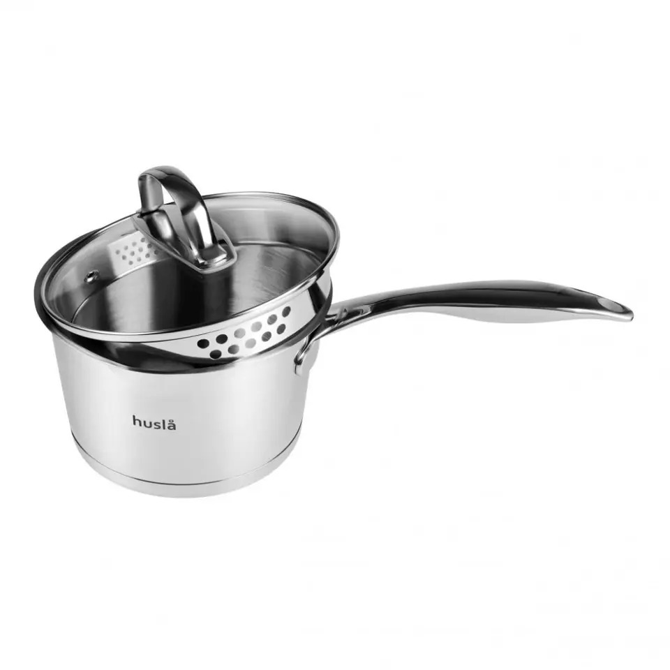 - garnek z pokrywą szklaną i cedzakiem 18 cm poj. 2,3 L