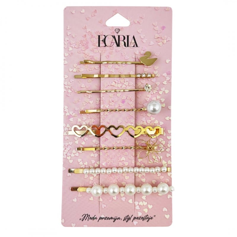 Zestaw spinek do włosów - 8 sztukDodaj odrobinę koloru i uroku swoim stylizacjom dzięki naszemu zestawowi spinek.Ten komplet składa się z sześciu uroczych spineczek, które doskonale sprawdzą się zarówno na co dzień, jak i na specjalne okazje.Wymiary:Długość: od 4,6 do 6,5 cmSzerokość: od 0,2 do 2 cmGłębokość: 1,5cmWymiary kartonika z opakowaniem:17cm x 8cm x 1,5cmWaga:18g netto / 20g bruttoMateriał: Metal nieszlachetny - bez niklu i chromuUnikać kontaktu z wodą