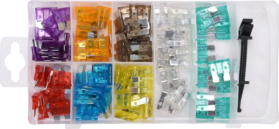 • po 12 szt.: 3 A, 5 A, 7.5 A, 10 A, 15 A, 20 A, 25 A, 30 A