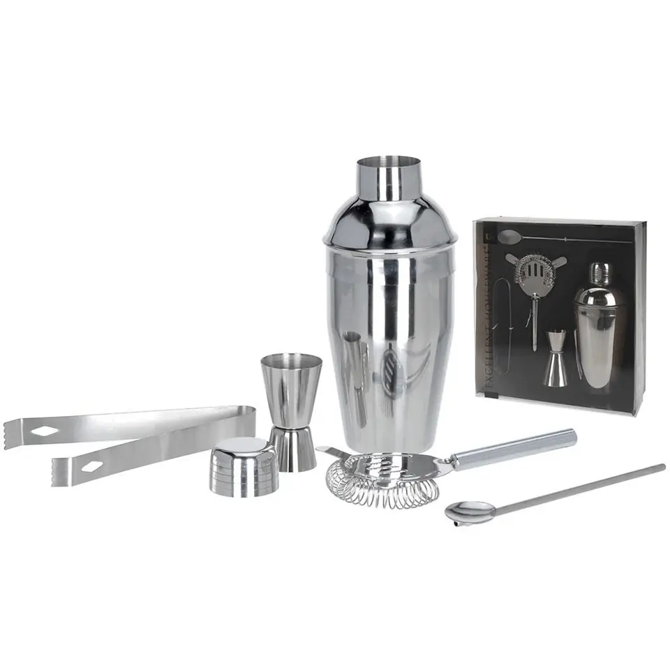Shaker do koktajli i drinków składający się z 5 elementów. Całość wykonana ze stali nierdzewnej. Pozwala w łatwy sposób wymieszać ze sobą składniki na napój zarówno alkoholowy jak i owocowy. Świetny pomysł na prezent.