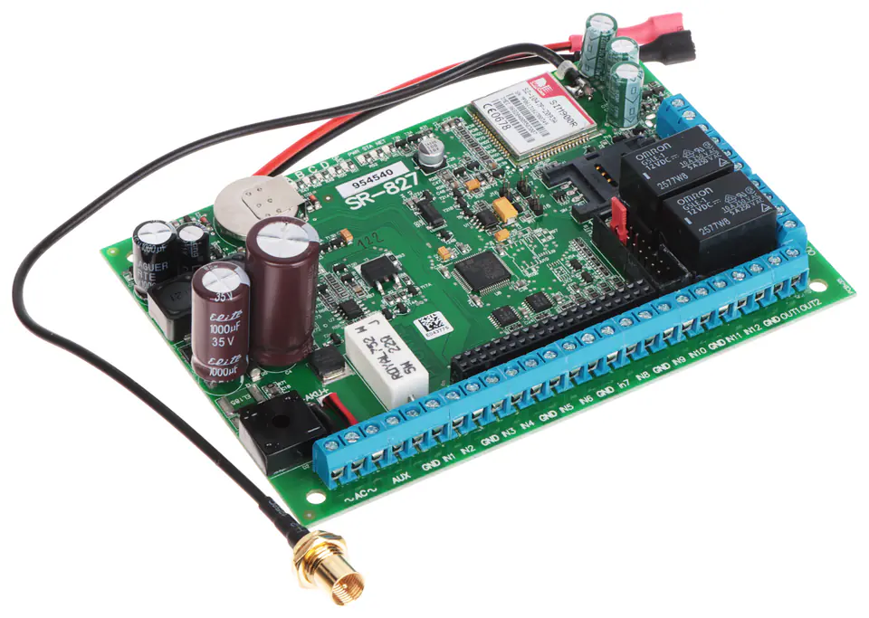 SR-827 to profesjonalna, 2-strefowa centrala alarmowa zintegrowana z nadajnikiem GPRS/GSM, wykorzystującym do raportowania i powiadamiania sieć telefonii komórkowejJest przystosowany do wysyłania informacji zarówno do stacji monitorujących jak i bezpośrednio na telefony komórkoweDomyślną drogą wysyłania powiadomień jest GPRS, jednak w przypadku braku dostępności internetowej transmisji danych, moduł wysyła powiadomienia CLIP / SMS