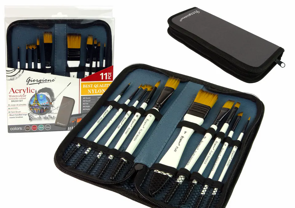 W skład zestawu wchodzą pędzle o różnych kształtach i rozmiarach, co pozwala na dowolność w tworzeniu. Odnajdziesz tu pędzle do malowania cienkich i grubych linii, wypełniania powierzchni, mieszania kolorów oraz do malowania precyzyjnych konturów. Każdy z pędzli został wyposażony w miękkie włosie, co gwarantuje płynne i precyzyjne malowanie. Drewniane rączki zapewniają komfort i pełną kontrolę nad pędzlem.