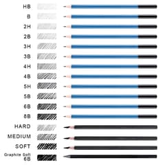 - - Twardość ołówków: 2H, 3H, 4H, 5H, HB, B, B2, B3, B4, B5, B6, B8, 6B