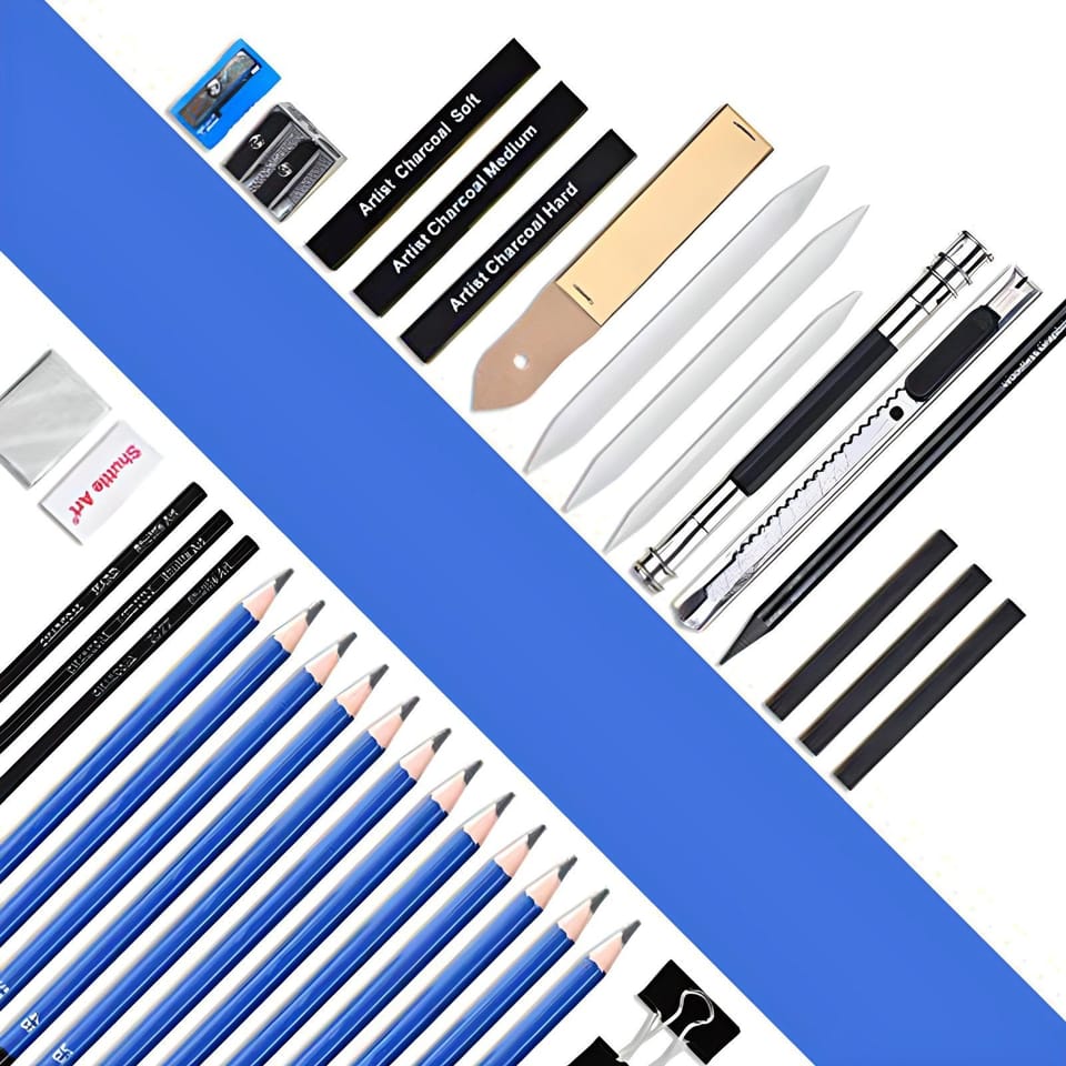 - - 3 ołówki węglowe (miękki / średni / twardy)