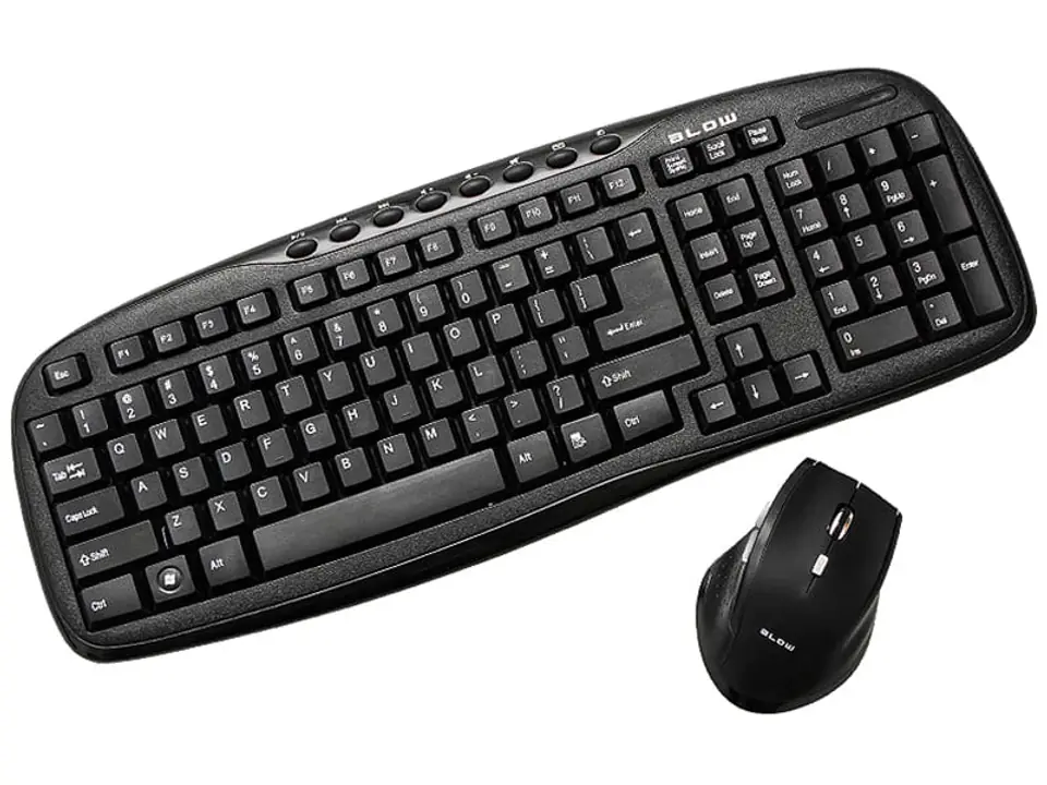 Zestaw bezprzewodowy BLOW KM-1 to niezwykle wygodny i uniwersalny zestaw bezprzewodowej klawiatury i myszy pracujący na częstotliwości radiowej 2,4 GHz. Zestaw został wyposażony w miniaturowy odbiornik USB schowany w myszce, który po podłączeniu do komputera sam automatycznie instaluje się w systemie i nawiązuje połączenie z klawiaturą i myszą. Dzięki swoim miniaturowym rozmiarom nie musimy pamiętać o odłączaniu go od komputera przenośnego, ponieważ jego wymiary nie mają negatywnego wpływu na gabaryty i mobilność urządzenia.
