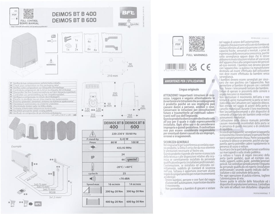Zestaw BFT DEIMOS BT B600 KIT EE do 600kg bram przesuwnych