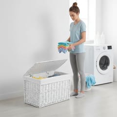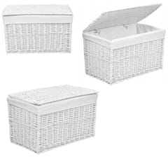 Zestaw białych kufrów wiklinowych 3 szt
