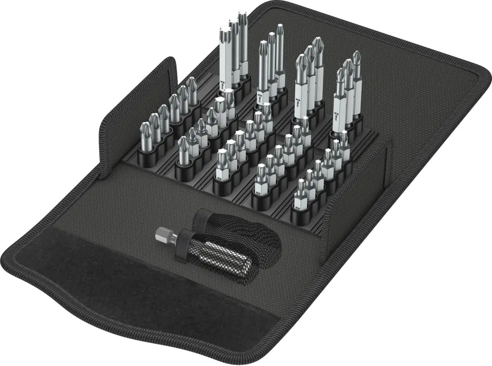 Wykonanie: z bitami ciągliwo-twardymi w etui tekstylnym. Bity są przejrzyście uporządkowane, zabierają mało miejsca i można je szybko wyjąć.