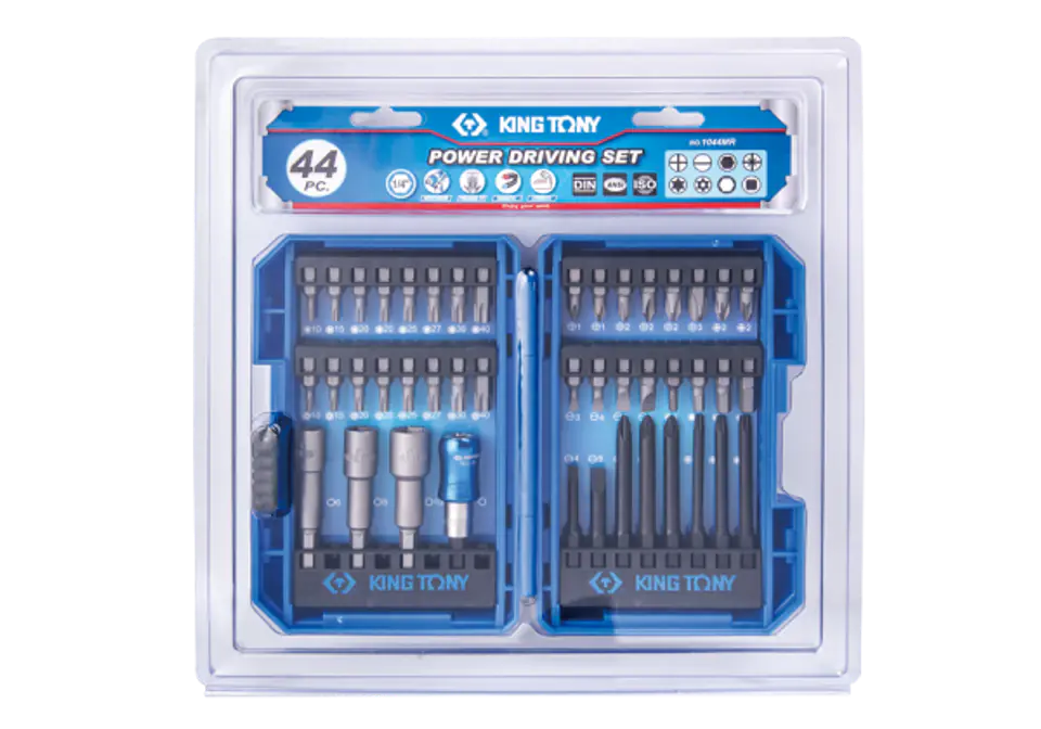 Zestaw bitów do wkrętarki 1/4” 44 elementy King Tony. W skład zestawu wchodzą narzędzia: bity 1/4” 25 mm w rozmiarach: H3, H4, H5, H6 (imbus) , PH1 x 2 szt. PH2 x 2 szt. o6 mm, PH2 o4.7 mm, PH3 (krzyżak) , T10, T15, T20 x 2 szt. T25, T27, T30, T40 (TORX) , T10H, T15H, T20H x 2 szt. T25H, T27H, T30H, T40H (TORX z otworem) , 3.0x0.5 mm, 4.0x0.5 mm, 5.0x0.8 mm, 6.0x1.0 mm (płaskie) , PZ2 x 2 szt. (pozdrive) , bity 50 mm : 4.0x0.8 mm, 6.0x1.0 mm (płaski) , T15, T20, T25 (TORX) , PZ2 (pozdrive) , PH2 x 2 szt. (krzyżak) , końcówki nasadowe z magnesem 6-kątne w rozmiarach: 6, 8, 10 mm , uchwyt do bitów 1/4” szybkozłączka z magnesem. Całość w poręcznym plastikowy organizerze o wymiarach 150 x 103 x 46 mm. Bity wykonane są ze stali S2, końcówki nasadkowe ze stali chromowo-wanadowej.Wymiar plastikowego etui: 150 x 103 x 46 mm Karta produktu - 1044MR
