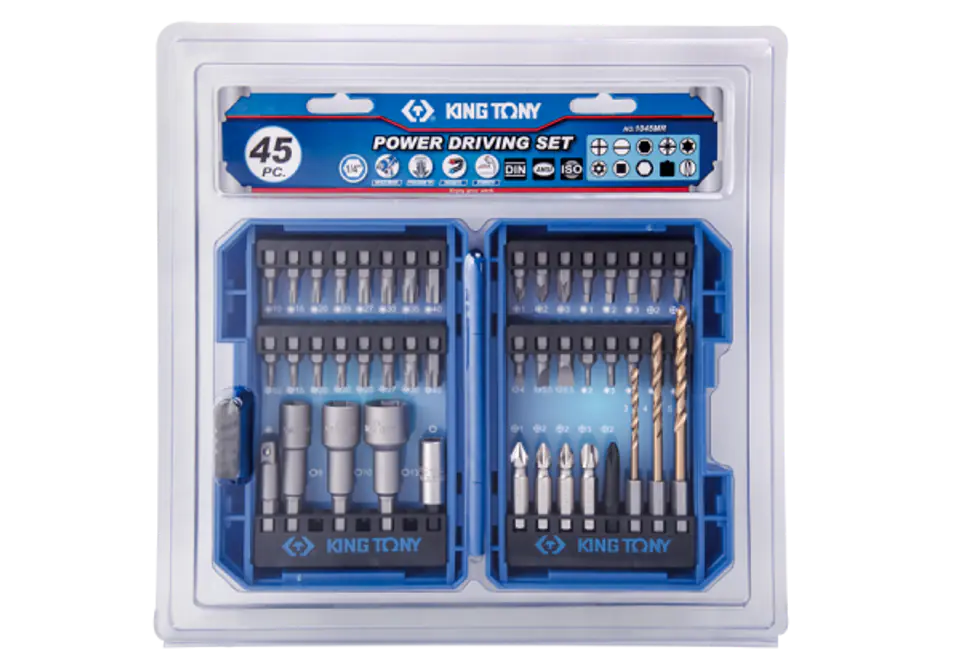 ZESTAW BITÓW DO WKRĘTARKI 1/4" 45cz., BITY HEX, TORX, PH, PZ, PŁASKIE, NASADOWE, KWADRAT, WIERTŁA King Tony