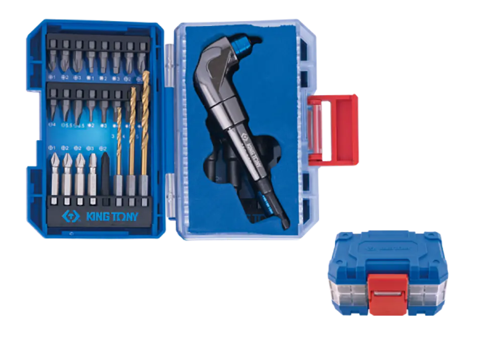 Zestaw akcesoriów 1/4" do wkrętarki z adapterem kątowym King Tony 45 elementów.