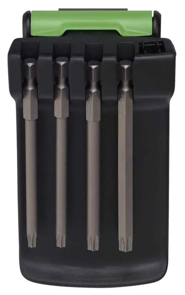 4-elementowy zestaw grotów w uchwycie narzędziowym systemu Luna GO z zaczepem na pas. Oryginalny uchwyt narzędziowy z zabezpieczeniem magnetycznym, z miejscem na jedno narzędzie wkładane od góry i cztery zawieszane. Do szybkiego i wygodnego użytkowania i przechowywania narzędzi z chwytem sześciokątnym 1/4". Uchwyt narzędziowy może być łatwo zaczepiony przegubowo na pas, zapewniając wygodę pracy i bezpieczeństwo użytkowania.