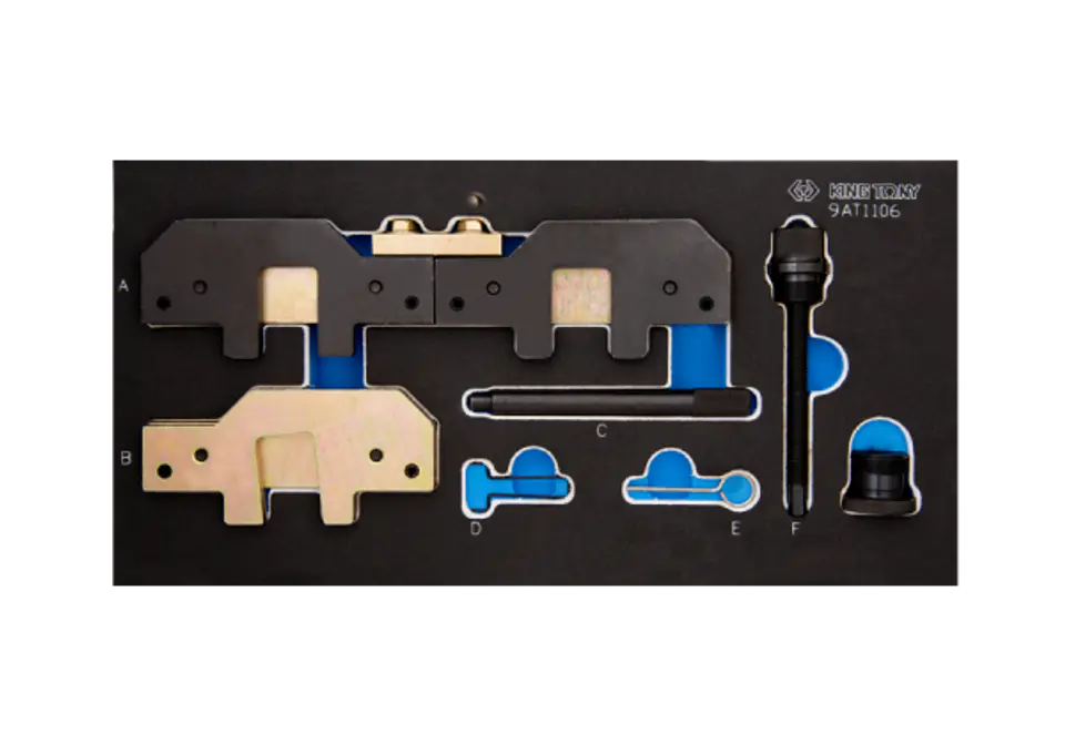 Do regulacji i ustawiania popularnych silników benzynowych BMW. Wskazówki: użyj klucza 9AT1-A02 stosując ten zestaw do pojedynczego układu VANOS (do wałka rozrządu zaworów dolotowych) . Użyj 9AT1303 stosując ten zestaw do układu Twin VANOSW zestawie:A- płytka do ustawiania wałka rozrządu B- płytka do synchronizacji C- trzpień blokujący koło zamachowe D- trzpień napinacza (M50) E- trzpień napinacza (M52) F- napinacz. Model: 318is E36(92-99) / 318ti Compact E36(94-01) / 320i E36/E46 (92-07) / 323i E36/E46 (95-01) / 325i E36/E46 (92-07) / 328i E36/E46 (95-01) / 330i E46 (00-07) / 520i E39/E60 (96-05) / 523i E39(96-00) / 525i E39/E60(00-05) / 528i E39(96-00) / 530i E39/E60(00-05) / 728i E38(94-02) / 730i E65(02-05) / Z3 E36 1,9-3,0(96-03) / Z4 E85 2,2-3,0(03-06) / X3 E83 3,0 (03-06) / X5 E53 3,0 (99-07) Kod silnika: M42/M44/M50/M52 no VANOS (VVT) 18 4s 1, 19 4s 1, 20 6s 2, 25 6s 2 M50/m52 single vamos (VVT) 20 6S 2, 20 6S 3, 25 6S 3, 25 6S 2, 25 6S 3, 28 6S 1 M52(TU) /M54/M56 TWIN VANOS (VVT) 20 6S 4, 22 6S 1, 25 6S 4, 25 6S 5, 28 6S 2, 30 6S 3 Karta produktu - 9AT1106E
