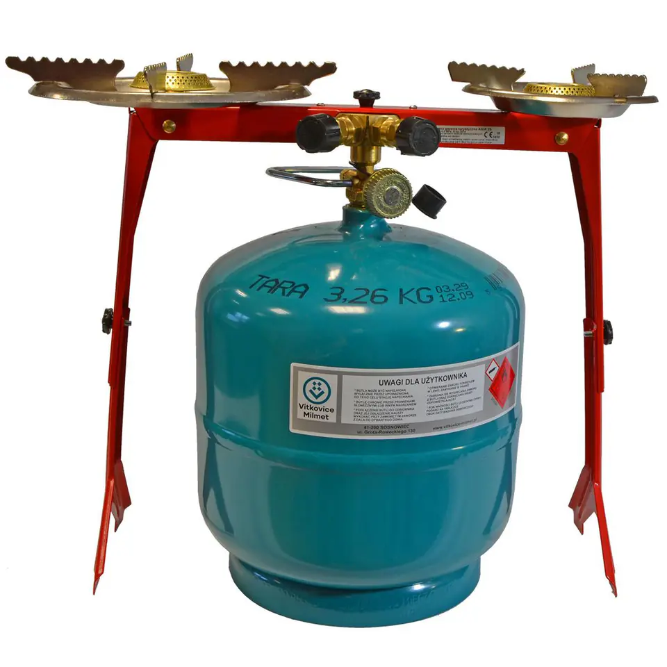 Wysokiej jakości dwupalnikowa turystyczna kuchenka gazowa - 1 palnik duży i 1 palnik mały.. Produkt wyprodukowany w POLSCE.