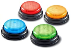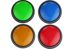 Zestaw skada si z:- pomaraczowego wiateka,- czerwonego wiateka,- niebieskiego wiateka,-zielonego wiateka.Przyciski odznaczaj si trzema rnymi dwikami (zielony oraz czerwony posiadaj ten sam dwik), ktre aktywuj si po wciniciu wiateka. Podczas zabawy mona usysze midzy innymi odgosy przypominajce syren policyjn, suby specjalne czy triumf. Jestemy pewni, e rnorodno kolorw i dwikw, pyncych z elementw zabawki, sprawi, e kady wykorzysta j na wielesposobw. Jedynym ograniczeniem jestwyobrania - wiatekabuzzersmona wykorzysta zarwno w domu podczas gier i zabaw, jak i w szkole, gdzie bd suy za sygnalizatory dla kadego z uczestnika. Zestaw ten bdzie wietnym sposobem na popraw zrcznoci i refleksu u dziecka, poniewa mona wykorzysta go w zabawie polegajcej na zapamitywaniu wciskanych kolorw, a nastpnie odtwarzaniu sekwencji.Zestaw wiateek odznacza si certyfikatem CE oraz wyprodukowaniem zgodnie z obowizujc norm EN 71. Przeznaczony jest dla wszystkich dzieci, ktre osigny 3. rok ycia. Zasilane s bateriami, ktre nie s doczone do zestawu.Wymiary elementw: