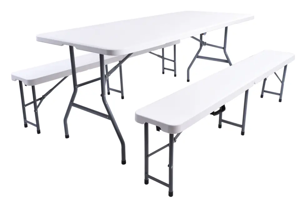 Zestaw cateringowy FETA WHITE stół + 2 ławki