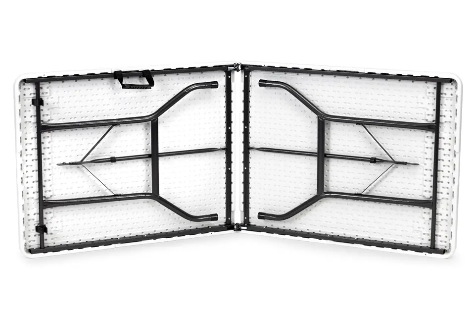 Blat wykonano z odpornego na warunki atmosferyczne i uszkodzenia mechaniczne tworzywa HDPE, dzięki temu mebel będzie służył przez wiele sezonów. Metalowy stelaż zapewnia odpowiednią stabilność i sprawia że stół wytrzymuje obciążenie do 100 kg.