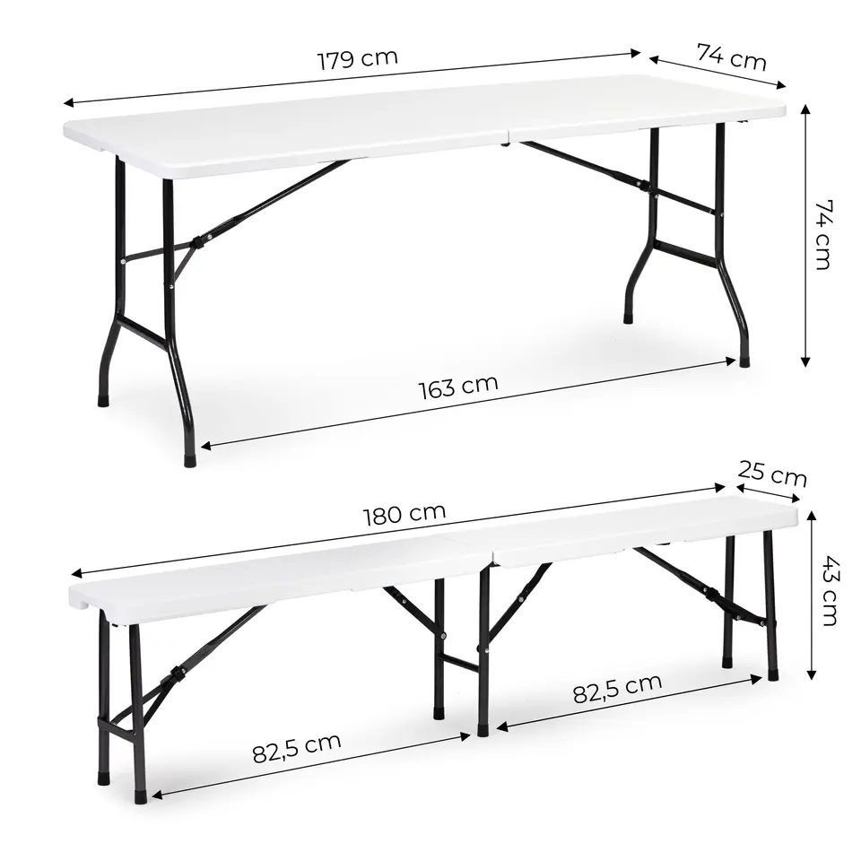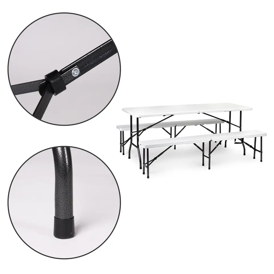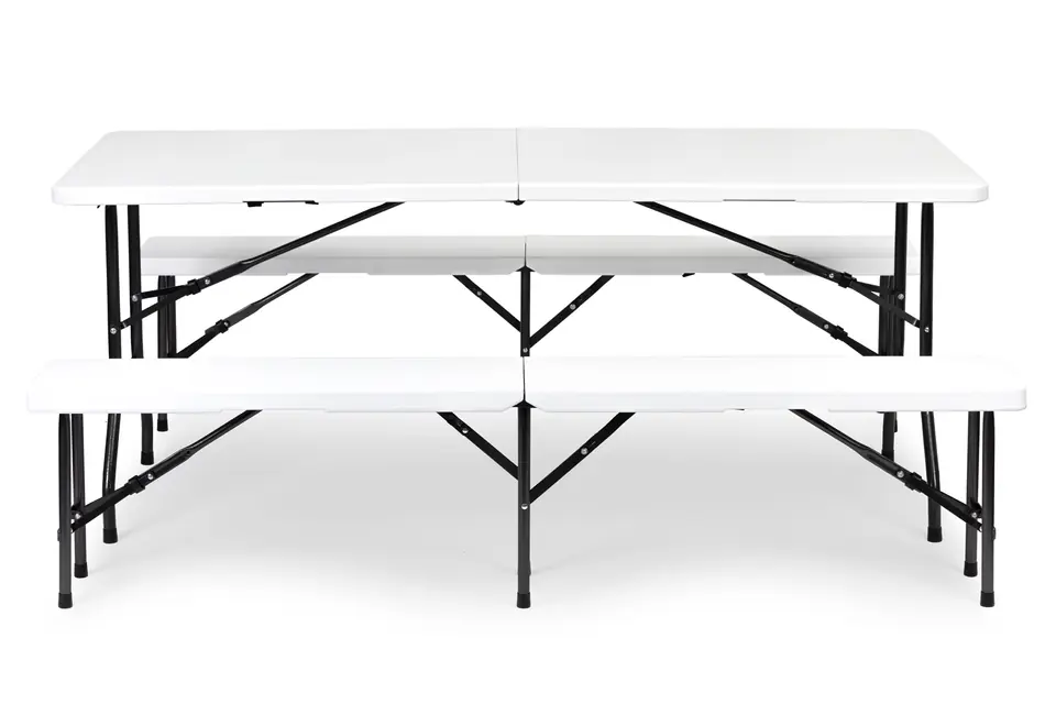 Zestaw cateringowy stół bankietowy 180 cm 2 ławki biały MultiGarden