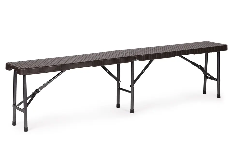 Dzięki solidnej konstrukcji i zastosowaniu odpornego na warunki atmosferyczne materiału, doskonale sprawdzi się na wszelkiego rodzaju imprezach w plenerze. Metalowy stelaż sprawia, że z ławki mogą korzystać 4 dorosłe osoby.