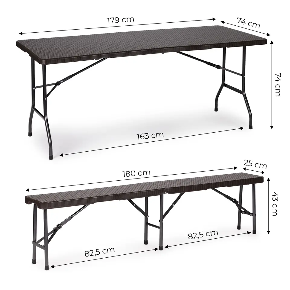 Zestaw cateringowy stół bankietowy 180 cm 2 ławki ratan brąz MultiGarden
