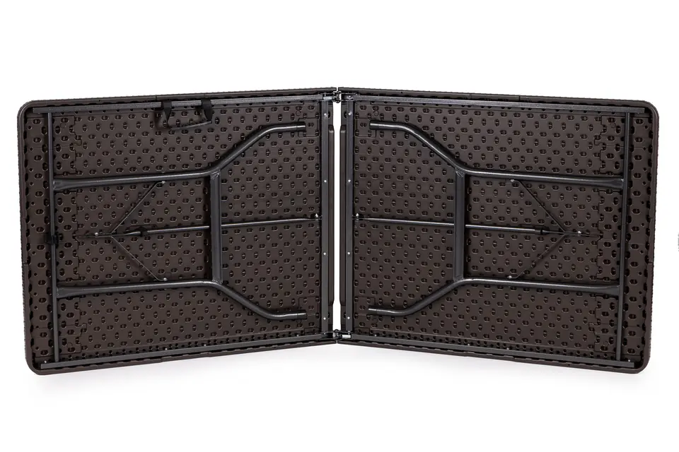 Blat wykonano z odpornego na warunki atmosferyczne i uszkodzenia mechaniczne tworzywa HDPE, dzięki temu mebel będzie służył przez wiele sezonów. Metalowy stelaż zapewnia odpowiednią stabilność i sprawia że stół wytrzymuje obciążenie do 100 kg.