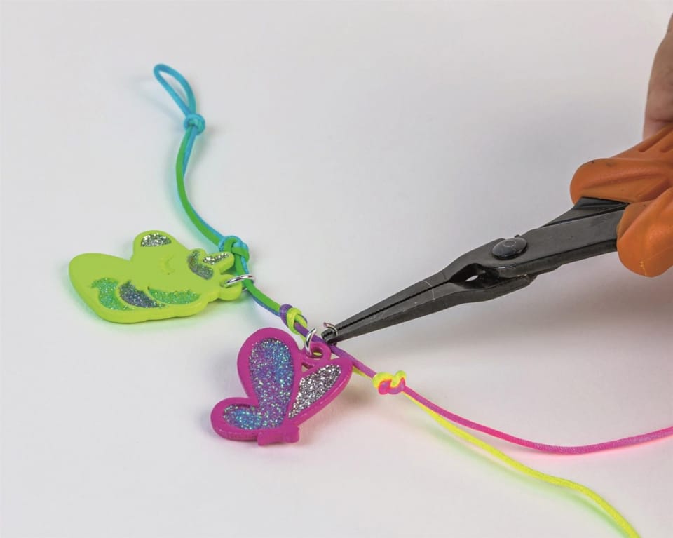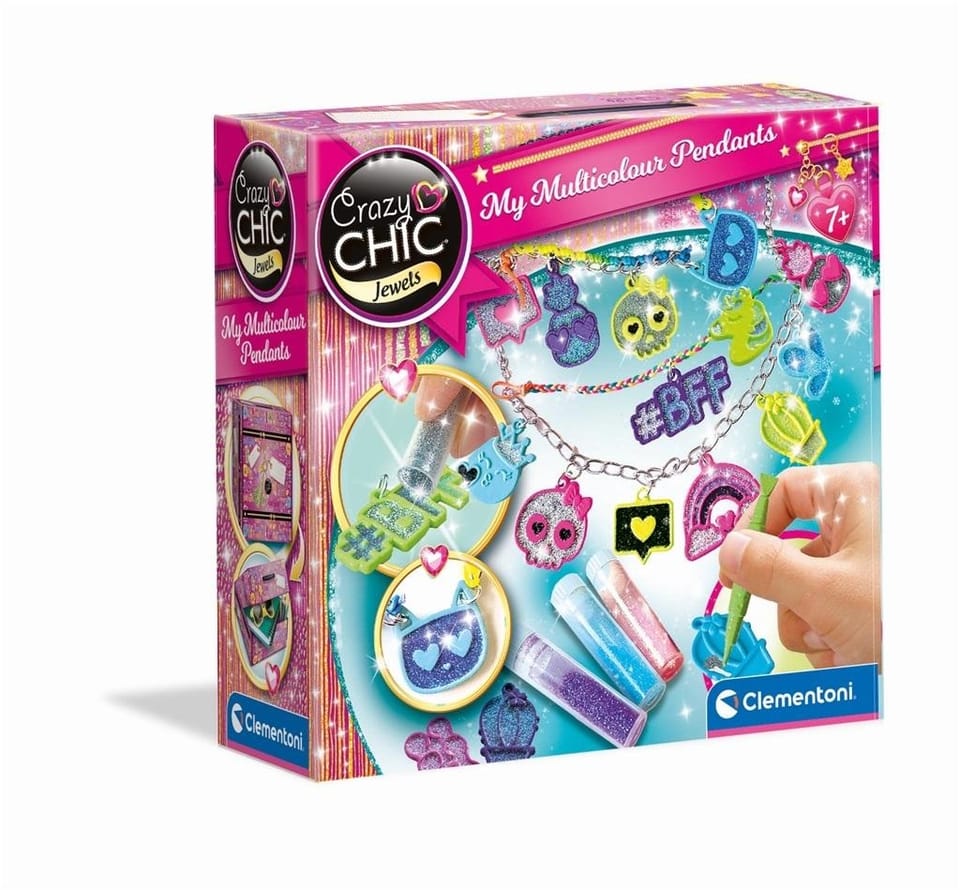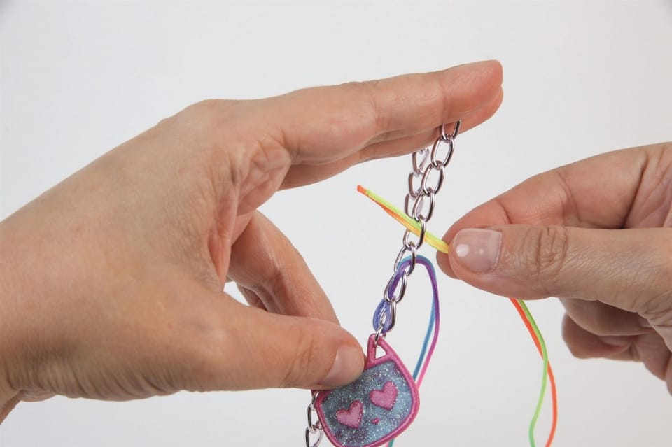 - Zestaw zawiera metalowe łańcuszki i kółeczka, zawieszki o nowoczesnym i atrakcyjnym wzornictwie, wielobarwny sznureczek i kolorowy brokat.