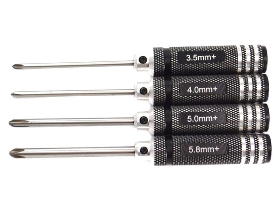 Zestaw czterech hartowanych śrubokrętów krzyżakowych, idealne do serwisowania modeli samochodów, helikopterów, samolotów i innych …