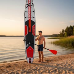 Po napompowaniu do zalecanego ciśnienia 15 PSI deska uzyskuje twardość porównywalną z klasycznym SUP-em sztywnym. Wyższe ciśnienie zwiększa stabilność, trzymanie kursu i bezpieczeństwo. Jednocześnie konstrukcja pozostaje lekka i łatwa do przenoszenia.