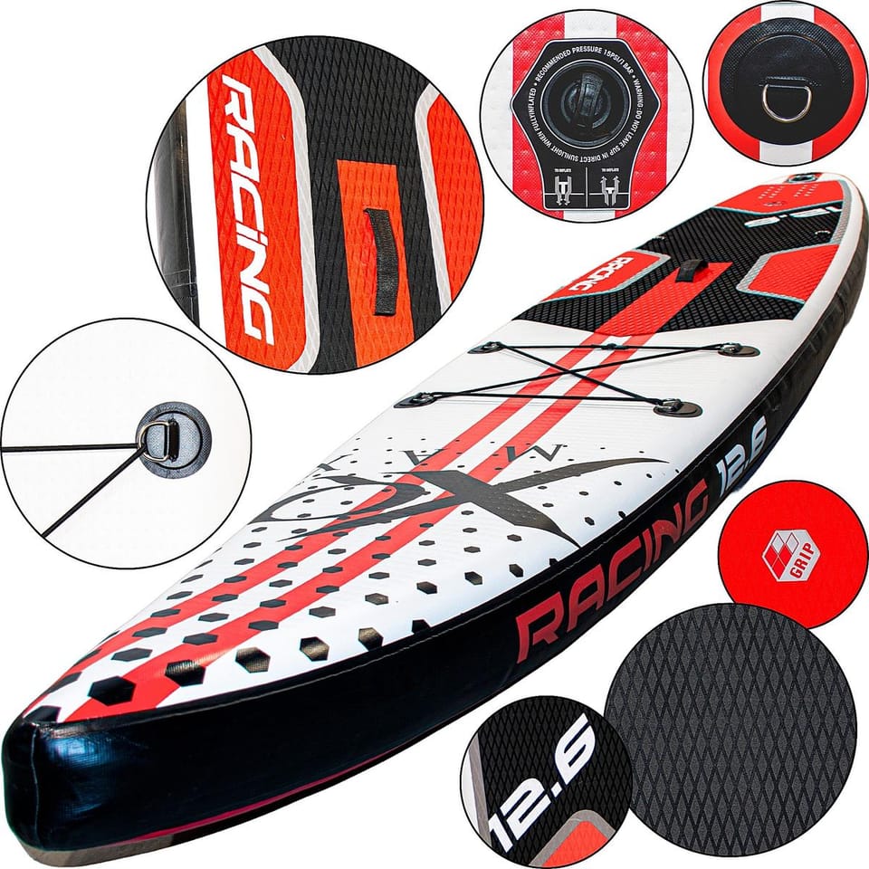 - technologia DROP STITCH – zapewnia sztywność jak w twardych deskachregulowane wiosło pozwoli dopasować jego długość do wymiarów użytkownikaprzeznaczona dla każdego miłośnika sportów wodnych do maksymalnej wagi 150 kg maksymalne ciśnienie 15 PSI oferuje doskonałą stabilność i kontrolędługość 381 cm sprawia,ze jest szybka, prosta w prowadzeniu i stabilnaspecjalna gumka mocująca pozwoli zabezpieczyć np.plecak podczas pływaniazdejmowany fin zapewni lepsze trzymanie kursu i łatwe składanie