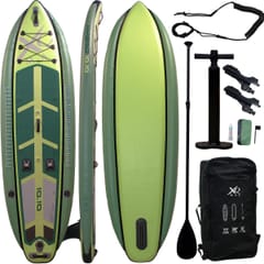 - Wymiary deski ok. (+/- 3cm): 330 x 100 x 15 cm (dł. x szer. x wys.)Wymiar otworu uchwytów na wędki ok.: 36x40mmWiosło aluminiowe, regulowane: tak, w zakresie 1,70-2,10mPrawidłowe ciśnienie maks. 1bar/15 PSIKonstrukcja drop-stitchIlość komór powietrznych: 3Uchwty do przenoszenia: takMożliwość przypięcia fotela: tak (brak w zestawieUchwyty na wędki z regulacją kąta nachylenia: tak, 2 szt.Kolor dominujący: zielonyMateria: PVC, pianka EVA o strukturze skóry krokodyla, tworzywo sztuczne, aluminiumZawartość zestawu: deska, 2x uchwyty na wędkę, pompka, pokrowiec - plecak na deskę, wiosło, linka zabezpieczająca, płetwaDo użytku powyżej 14 roku życiaMaksymalne obciążenie: 150 kgMarka: XQMAX