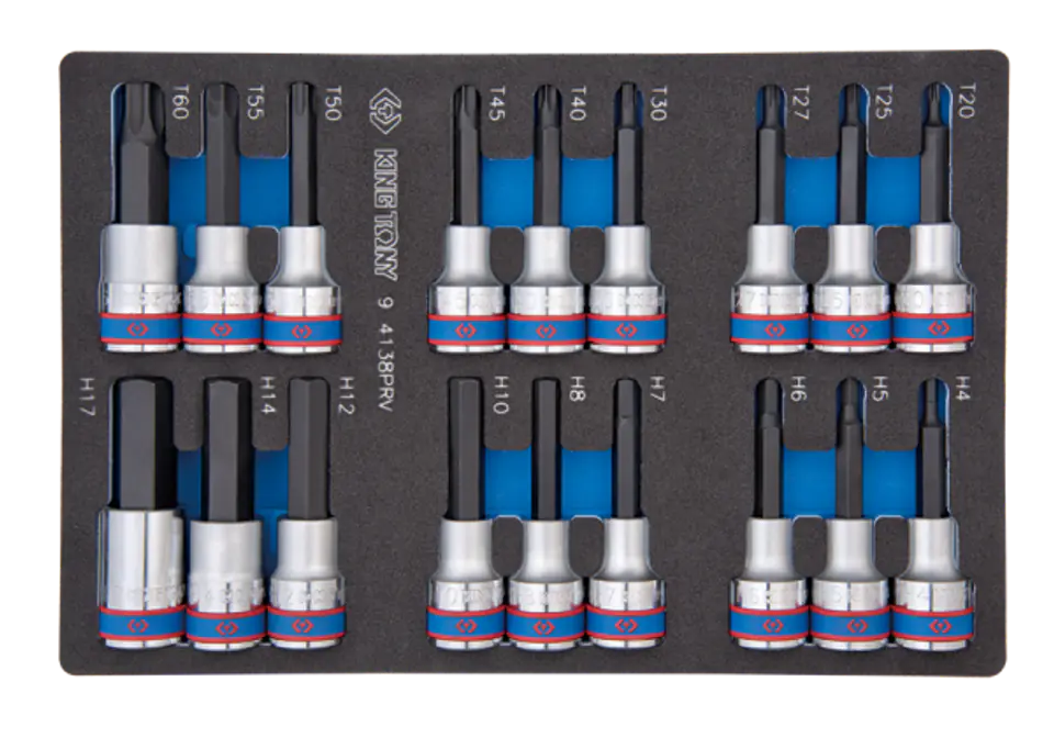 ZESTAW DŁUGICH NASADEK 1/2" HEX H4 - H17 + TORX T20 - T60, WKŁAD Z PIANKI EVA DO WÓZKA King Tony