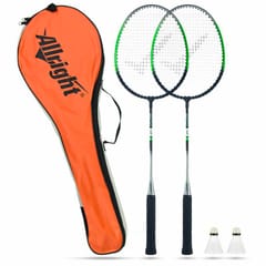 Zestaw dwóch rakietek MATCH z pokrowcem i lotkami. Typ: badminton tradycyjnyMateriał: główka z aluminium, shaft ze stali hartowanej, pokrowiec z PVCDługość rakietki : 665 mm (+/-5mm)Waga rakietki: 105 g (+/-5g)Konstrukcja rakietek: dwuczęściowaPokrowiec: FULL na całość zestawu z uchwytem do przenoszeniaZestaw zawiera: dwie kompletne i gotowe do gry rakietki Allright MATCH, pokrowiec i lotki.