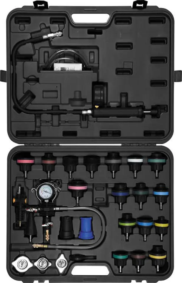 Ściągacz dwuramienny służący do demontażu łożysk, kół zębatych, tarcz hamulcowych itp. W zestawie z separatorami pomagającymi w zdejmowaniu ciasno pasowanych elementów oraz kompletem śrub centralnych. Polecany do serwisów samochodowych i mechanicznych.