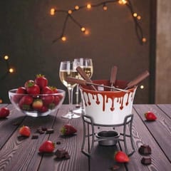 Stwórz wyjątkową atmosferę przy stole i delektuj się ciepłą, aksamitną czekoladą dzięki temu funkcjonalnemu, 6-częściowemu zestawowi do fondue. Idealny dla miłośników słodkości i wspólnego celebrowania smaku.