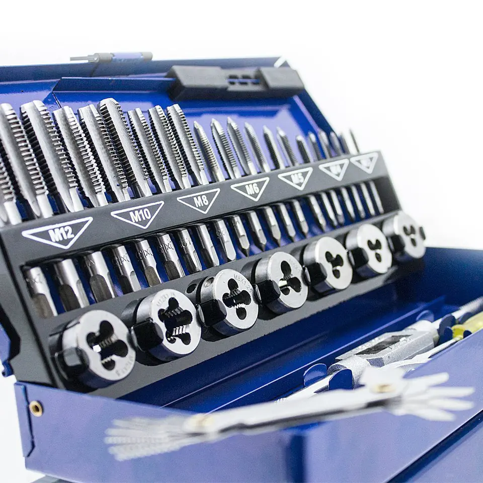 Zestaw 32 elementów do gwintowania. Nadaje się do większości materiałów o wytrzymałości do 900 N/mm2: stal, tworzywa sztuczne, miękkie i twarde drewno. Niezbędne dla profesjonalistów jak i zarówno dla amatorów. Wykonane ze stali z dodatkiem wolframu co zapewnia wysoką wytrzymałość.