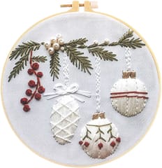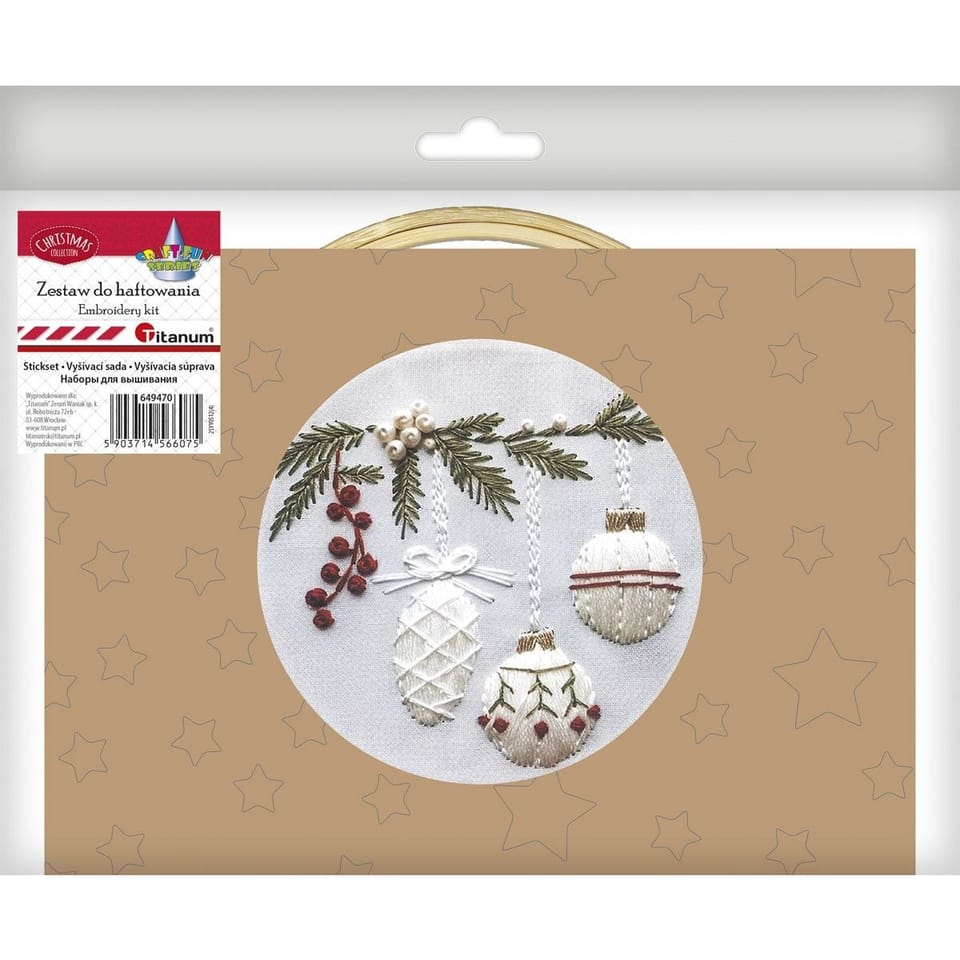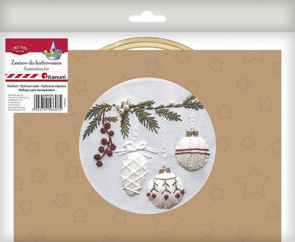- Gotowy zestaw do haftowania, zawierający: tkaninę 24x24 cm ze szkicem wzoru, tamborek o średnicy roboczej 15 cm, zestaw mulin, 3 igły, instrukcję w języku polskim.