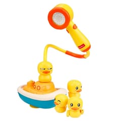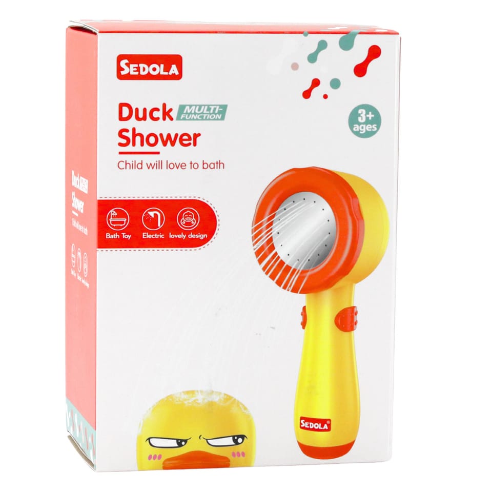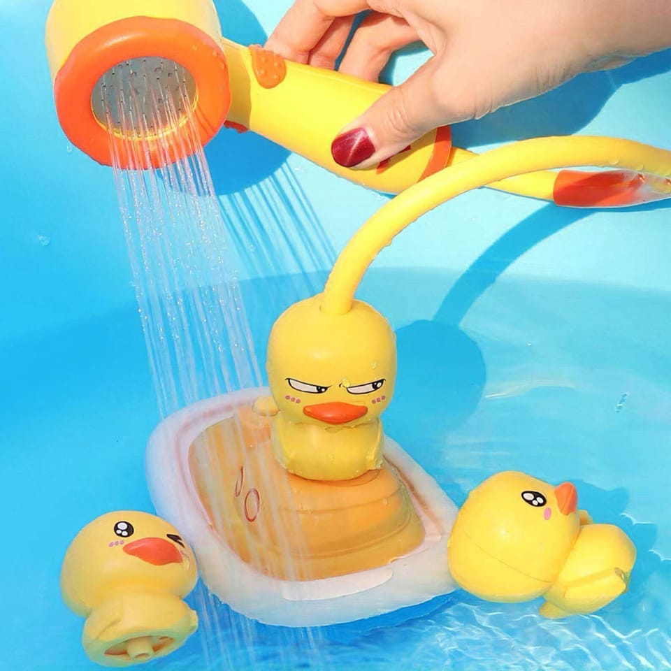 Zestaw posiada natrysk, który po uruchomieniu pompuje wodę i wypuszcza strumień niczym prawdziwa słuchawka prysznicowa. Dzięki zasilaniu bateryjnemu działanie zabawki jest płynne i wygodne. Wymienne główki kaczuszek różnią się wyrazami twarzy, co dodaje zabawie różnorodności i pozwala tworzyć własne scenariusze.
