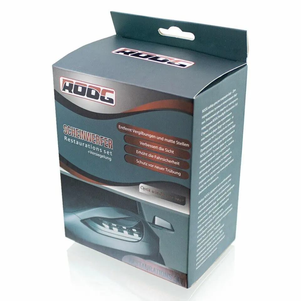 Zestaw ROOG zawiera najwyższej jakości materiały składowe. Przeznaczony jest do regeneracji zmatowiałych, pożółkłych, porysowanych reflektorów samochodowych wykonanych z tworzyw sztucznych.