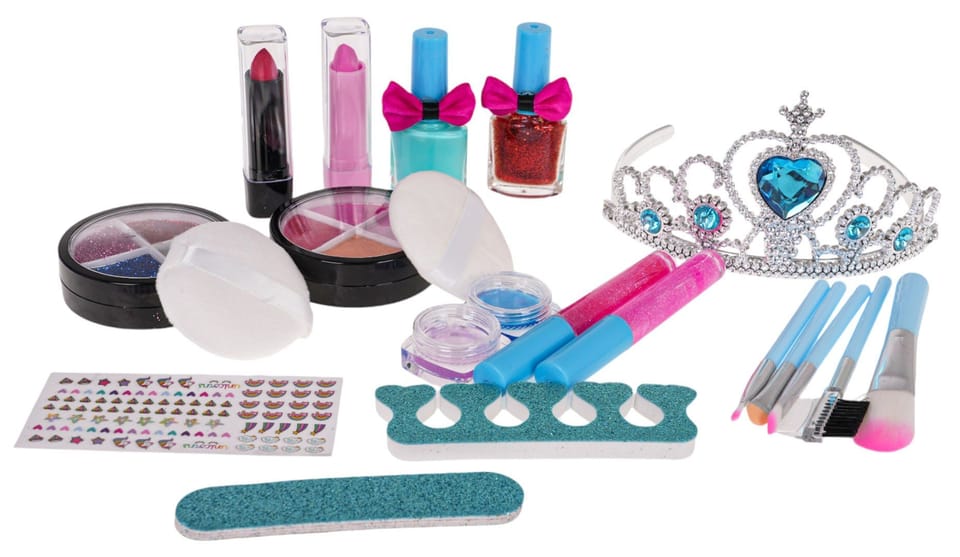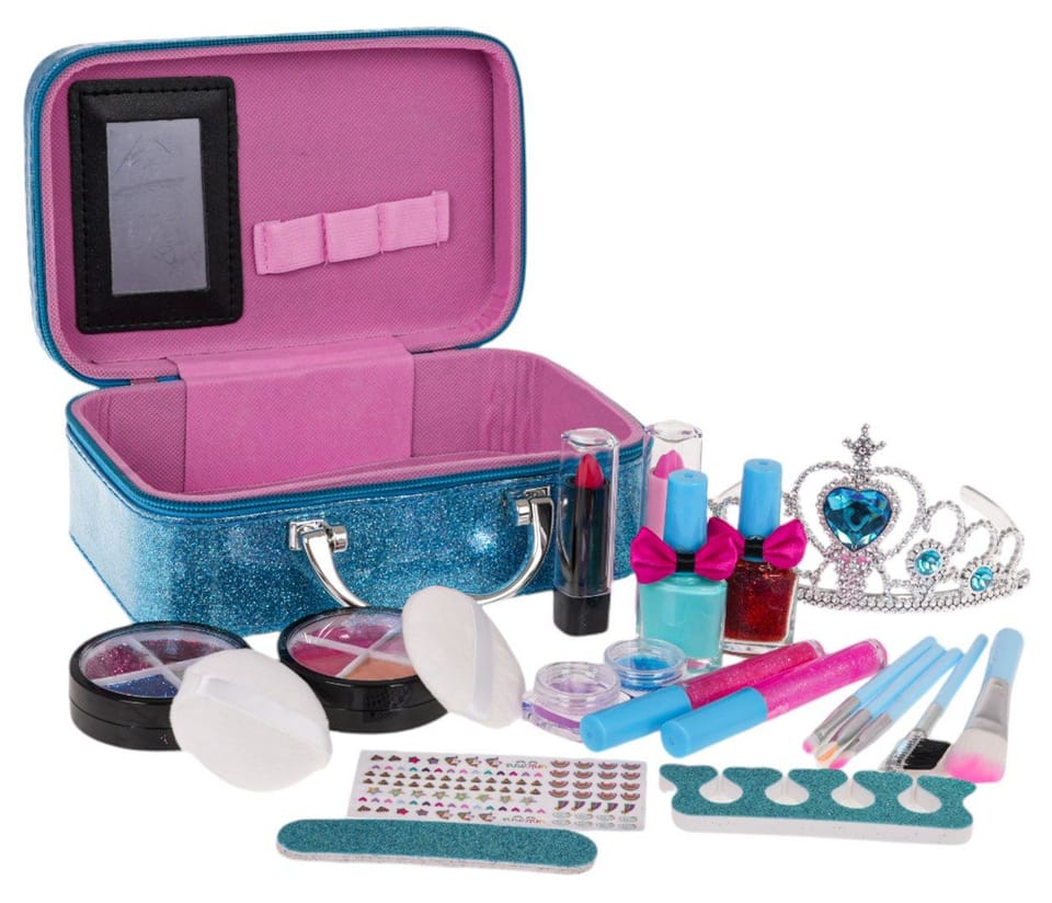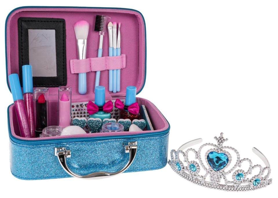 Bogato wyposażony zestaw do makijażu dla dzieci od 5-go roku życia. Kosmetyki są łatwo zmywalne i bezpieczne dla skóry dziecka. Zestaw zawiera mnóstwo dodatków, które z pewnością ucieszą, każdą młodą damę. Kosmetyki umieszczone zostały w ślicznym kuferku z rączką do przenoszenia. Zabawa tym zestawem pobudza kreatywność, rozwija zmysły i ukształtuje poczucie estetyki i piękna. Funkcje zestawu: - przeznaczony dla dzieci od 5-go roku życia, - bogato wyposażony, - kosmetyki są bezpieczne dla skóry dziecka, - kosmetyki są łatwo zmywalne, - zestaw umieszczony w ciekawym, przenośnym kuferku zapinanym na zamek błyskawiczny, - pobudza kreatywność, poczucie estetyki i piękna.