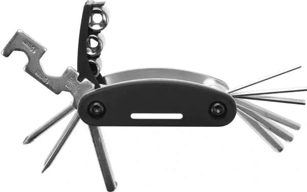Zestaw do naprawy roweru, kieszonkowe narzędzie wielofunkcyjne To składane narzędzie jest idealne do zabrania ze sobą podczas wycieczek rowerowych. Nadaje się do drobnych napraw. Narzędzie wielofunkcyjne ma 13 funkcji i jest wykonane ze stali.Dane techniczne: Kolor: czarny, srebrny, Materiał: plastik, stal, Wymiary: 9x3x4 cm (dł. X szer. X wys.) 1 śrubokręt płaski, 1 śrubokręt krzyżakowy, 1 śrubokręt Torx, 1 Okrągła głowa, 6 kluczy imbusowych, 3 śruby imbusowe.