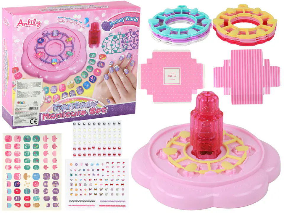 W skład zestawu wchodzi wszystko, co małe artystki potrzebują do stworzenia niepowtarzalnych stylizacji paznokci. Wygodna podkładka do stylizacji zapewnia idealne miejsce do pracy, a różnorodne naklejki, błyszczące cekiny i tipsy umożliwiają kreatywne wyrażanie siebie na małych paznokciach.