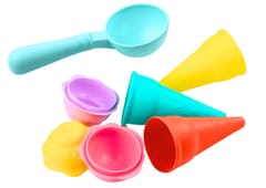 Zestaw do piasku to świetna propozycja dla dzieci, które uwielbiają kreatywne zabawy na świeżym powietrzu. Fioletowe wiaderko z przykrywką jest praktyczne i estetyczne, umożliwia łatwe przenoszenie piasku i wody. Przykrywka dodatkowo zabezpiecza zawartość przed wysypaniem. Niebieska łopatka solidna i wygodna, doskonała do kopania i formowania piaskowych budowli.Foremki w kształcie lodów są idealne do tworzenia piaskowych kształtów, dodając zabawie elementy kulinarne, zwiększają różnorodność zabaw i kreatywność dziecka.Cały zestaw utrzymany jest w delikatnych, pudrowych kolorach, co nadaje mu elegancki i przyjemny wygląd. Dzięki temu, każde dziecko będzie miało mnóstwo radości z zabawy na plaży lub w piaskownicy, a piękne kolory zestawu dodatkowo zachęcają do kreatywnych działań.