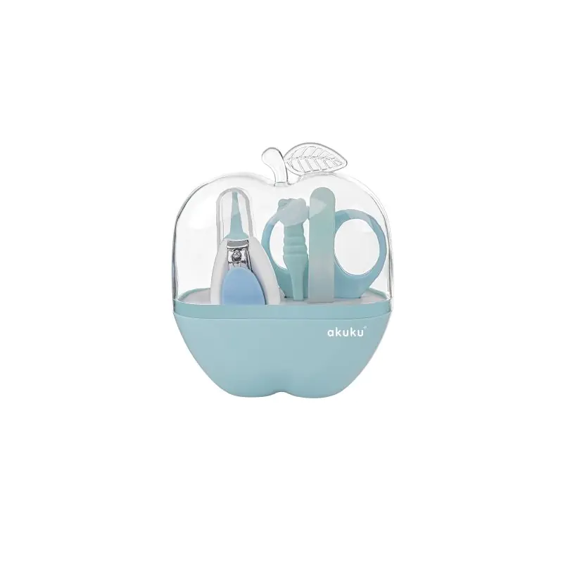 Zestaw pielęgnacyjny Apple case. Niezwykle przydatny i praktyczny zestaw pielęgnacyjny w odjazdowym etui w kształcie jabłka. W zestawie bezpieczne nożyczki i cążki z ogranicznikiem wykonane z stali nierdzewnej, szklany pilniczek oraz dwie pincety. Łatwy, prosty i estetyczny sposób przechowywania, wszystkie niezbędne produkty w jednym miejscu. Idealny w domu i w podróży. W zestawie znajdują się: - bezpieczne nożyczki z zaokrąglonymi końcówkami - cążki z ogranicznikiem - szklany pilniczek - pinceta 0 – 36 m+ - pinceta 9 – 36 m+ A0043