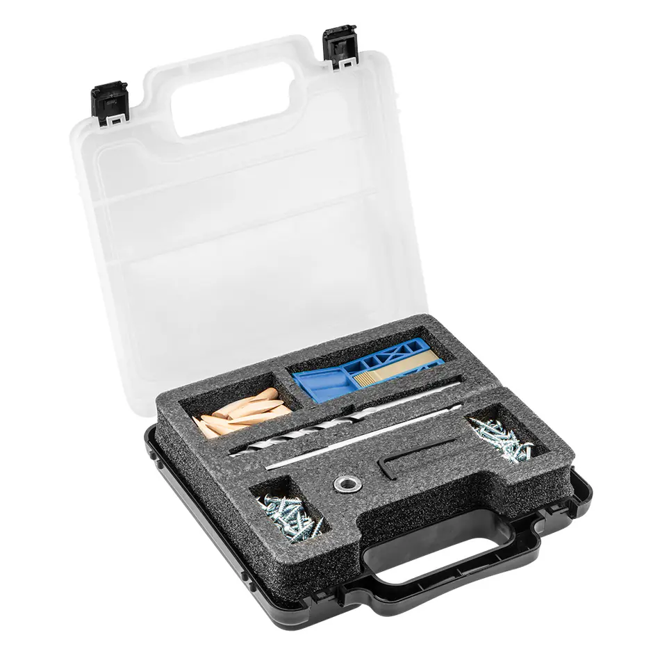 Zestaw do połączeń niewidocznych, 76 elementów, 48 szt. Wkrętów do drewna, klucz sześciokątny, 24 szt. kołków do drewna, wiertło do drewna, połączenia narożnikowe, typu "T", czołowe, ukośne,