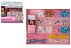 Zestaw do robienia bransoletek Wow Generation to uroczy zestaw dla dziewczynek, zawierający wszystkie niezbędne elementy do zrobienia pięknych, spersonalizowanych bransoletek. Zawartość zestawu: Charms z kolorowymi literami, aby napisać jej słowa i wiadomości, białe i złote koraliki, kolorowe koraliki do ozdobienia bransoletek (różowe, fioletowe, pomarańczowe i niebieskie), nici w 3 różnych kolorach: fioletowym, różowym i pomarańczowym, 5 metalowych charmsów do ozdobienia bransoletek: mikrofon.