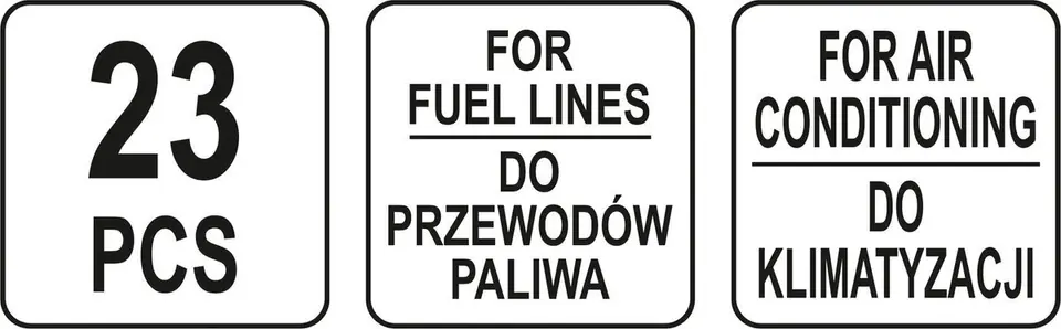 Profesjonalny zestaw do rozpinania, otwierania złączek systemów paliwowych i klimatyzacji. Zaciskają przewody i trwale blokują wycieki. Zaciski znakomicie nadają się do różnego rodzaju przewodów gumowych i z tworzywa. Klipsy pasują do większości marek samochodów osobowych pozwalające np. na szybkie zablokowanie przepływu freonu w przewodach klimatyzacyjnych. Uniwersalny zestaw przydatny w każdym zakładzie i warsztacie.
