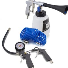 Zestaw akcesoriów z pistoletem do pomiaru ciśnienia w oponach i pistoletem przedmuchowym do sprężarki powietrza oferuje szeroki zakres możliwych zastosowań w warsztacie. Doskonałe czyszczenie w przemyśle, rzemiośle i motoryzacji.