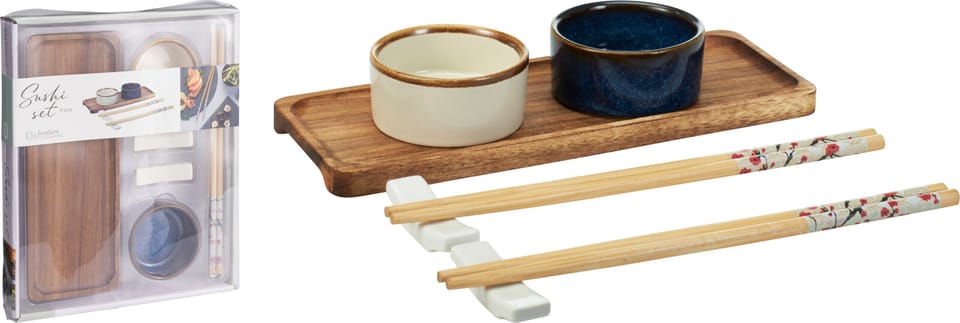 ZESTAW DO SUSHI Z PORCELANY I DREWNA 24CM 9 ELEMENTÓW