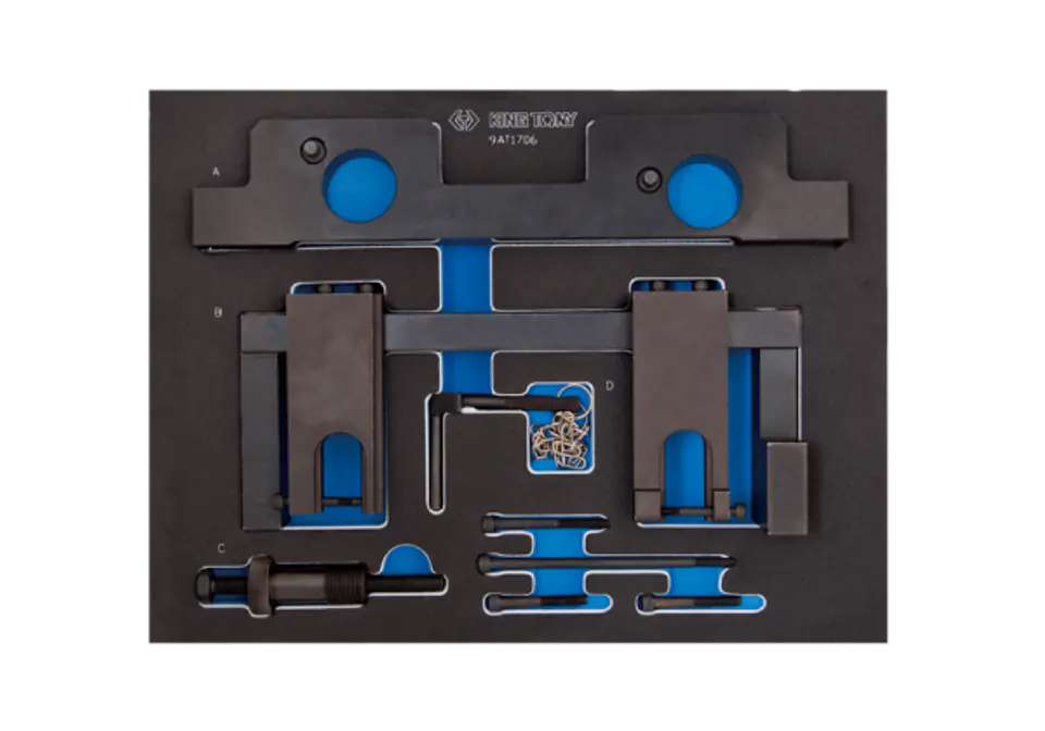 Zestaw narzędzi do ustawienia rozrządu dla BMW do silników benzynowych 2.0 z łańcuchem. Zestaw zawiera narzędzia do ustawiania VANOSa, narzędzia do blokowania wałka rozrządu i narzędzia do wstępnego napinania łańcucha dla pozycji TDC. Dedykowany do silników N20 i N26. Obsługiwane modela aut: BMW 1 Series: 125i F20/21(2012-14) BMW 3 Series: 320i/xDrive F30/31 (2012-14), 328i F30/31 (2012-14), 328i/xDrive F30/31 (2012-14) BMW 5 Series: 520i F10/11 (2010-14), 528i F10/11 (2013-14), 528i/xDrive F10/11 (2011-14) X1: sDrive18i/20i E84 (2011-14), xDrive20i/28i E84 (2011-14) X3: xDrive20i/28i F25 (2011-14) Z4: sDrive18i E89 (2013-14), sDrive20i/28i E89 (2011-14) Obsługiwane modele silników: N20 B20A, N20 B20B/U0, N20 B20O0, N26 B20